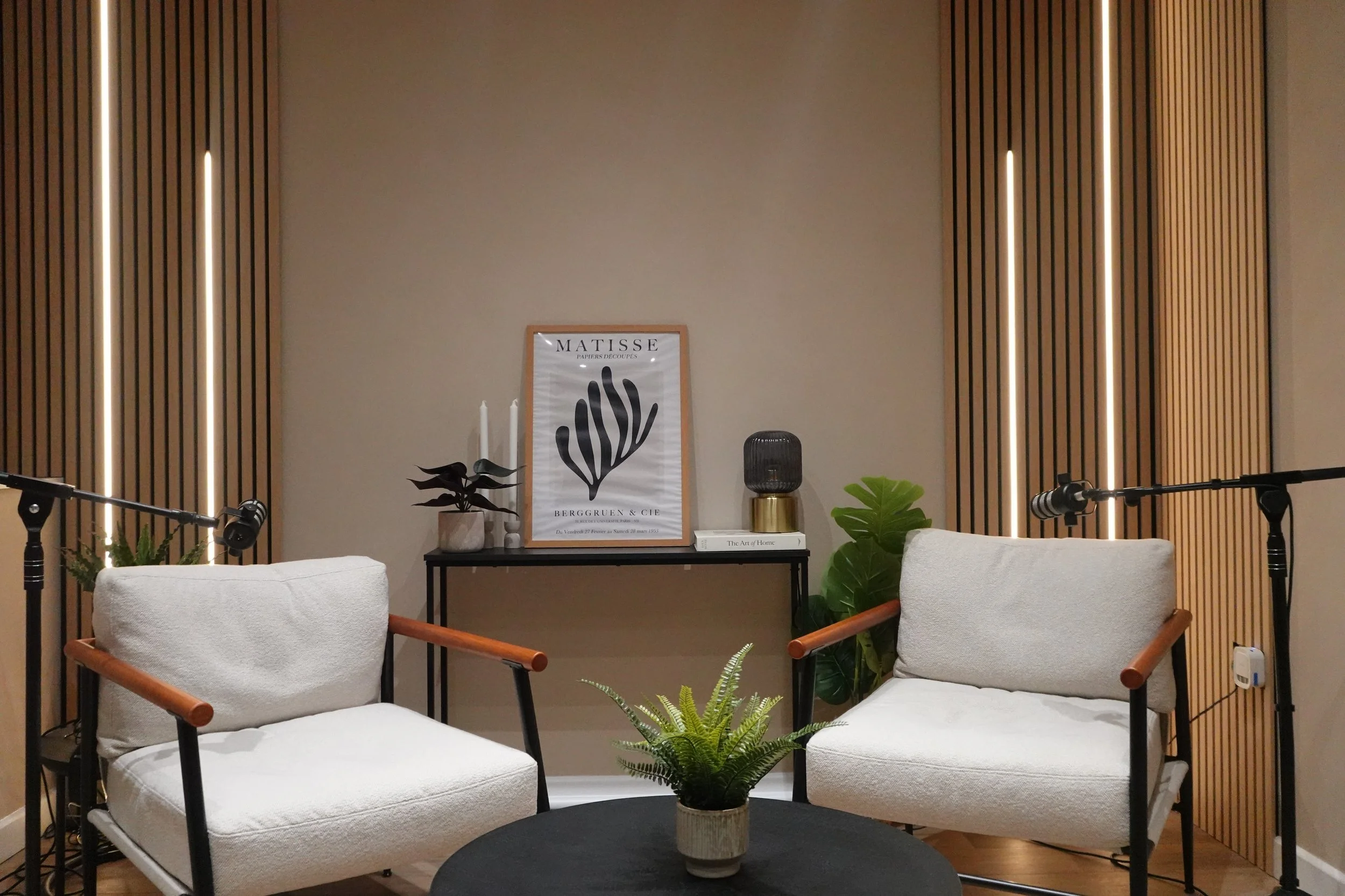 Studio Halo features four unique podcast sets, giving us the flexibility to support every kind of recording—from intimate conversations to dynamic panel discussions.